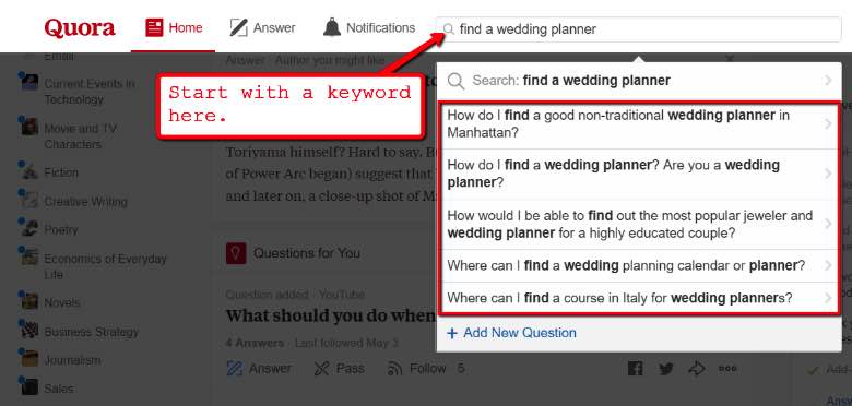 It starts with a keyword that will help you find questions that you can answer with your own content.