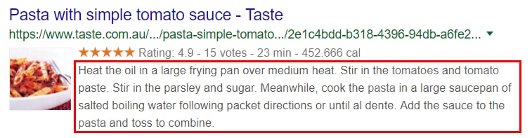5. It may sound too obvious, but the description should explain what your page is about. You can see in the image below that one of the competitors’ pages provides step-by-step instruction right in the snippet. Seeing it, readers understand that the recipe is pretty easy from the first glance and click through the page.