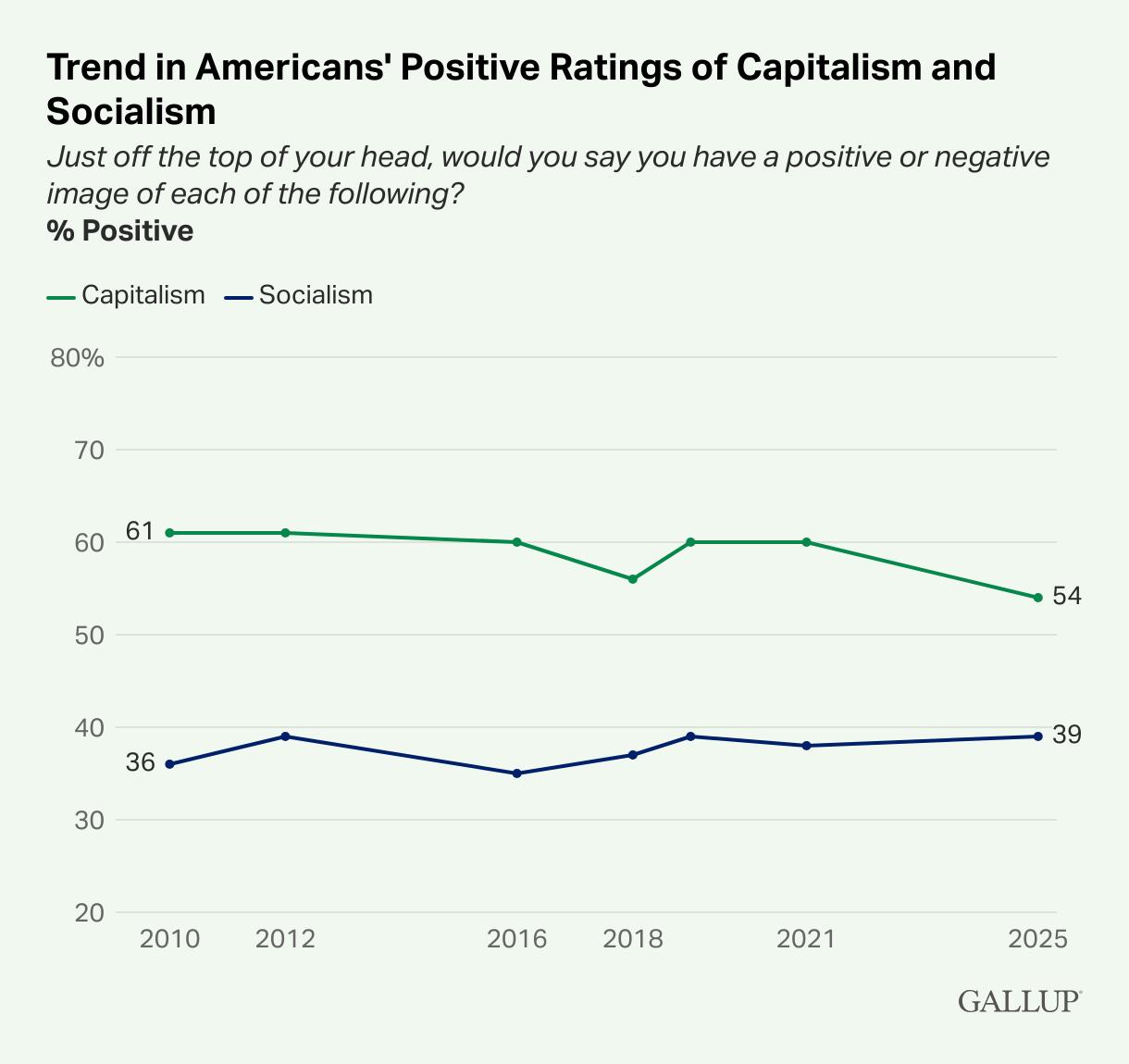 In a striking shift reflecting growing economic unease, Americans' positive view of capitalism has dipped to an all-time low of 54% in 2025, according to a Gallup survey conducted August 1-20 and released in September. This marks the lowest rating since Gallup began tracking opinions on economic systems in 2010, down from 60% in 2021 and a peak of 61% in earlier years.