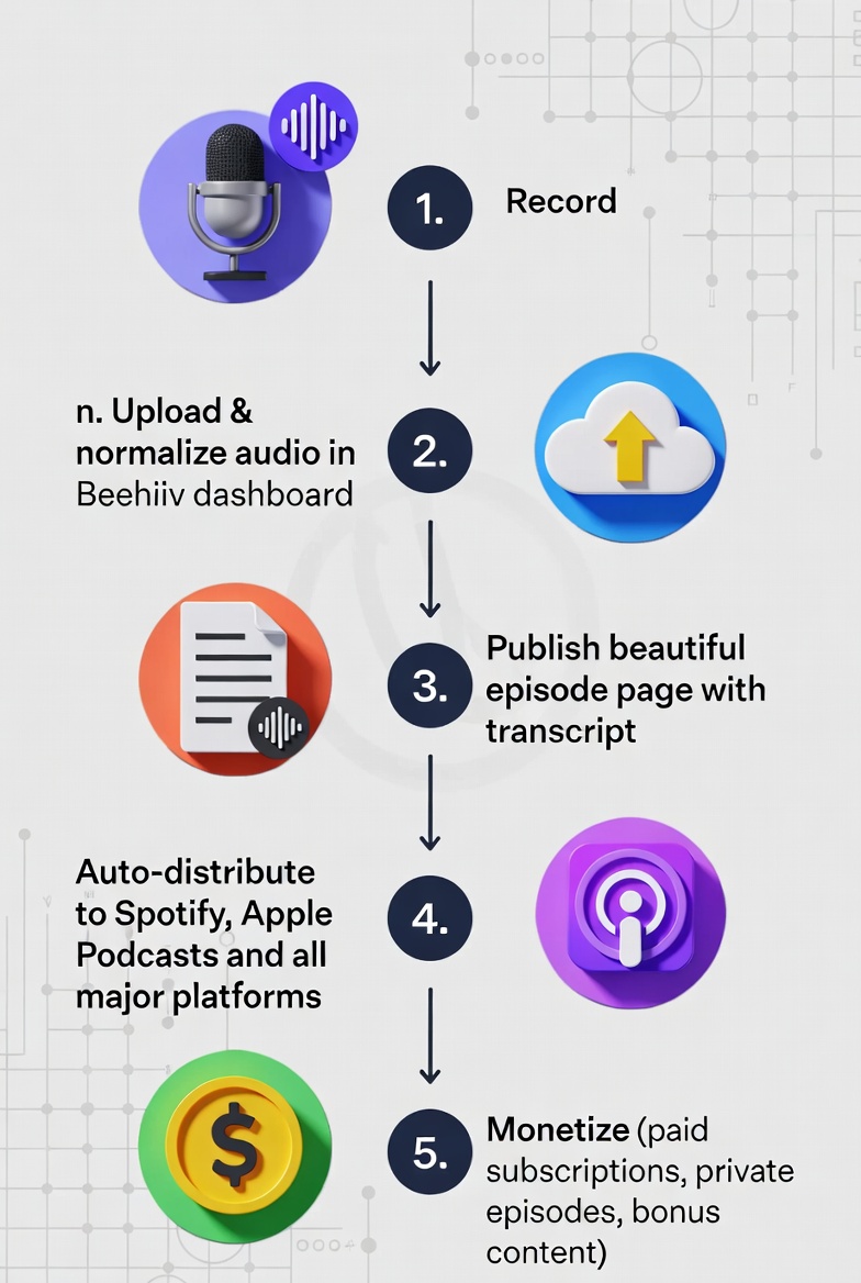 Beehiiv Launches Native Podcast Hosting: Creators Can Now Record, Publish, Distribute, and Monetize Audio All in One Platform