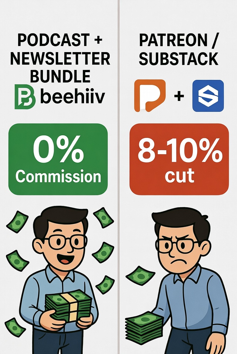 Beehiiv’s approach to podcast monetization mirrors what it already does best with newsletters — giving creators total flexibility and zero platform fees on their earnings.