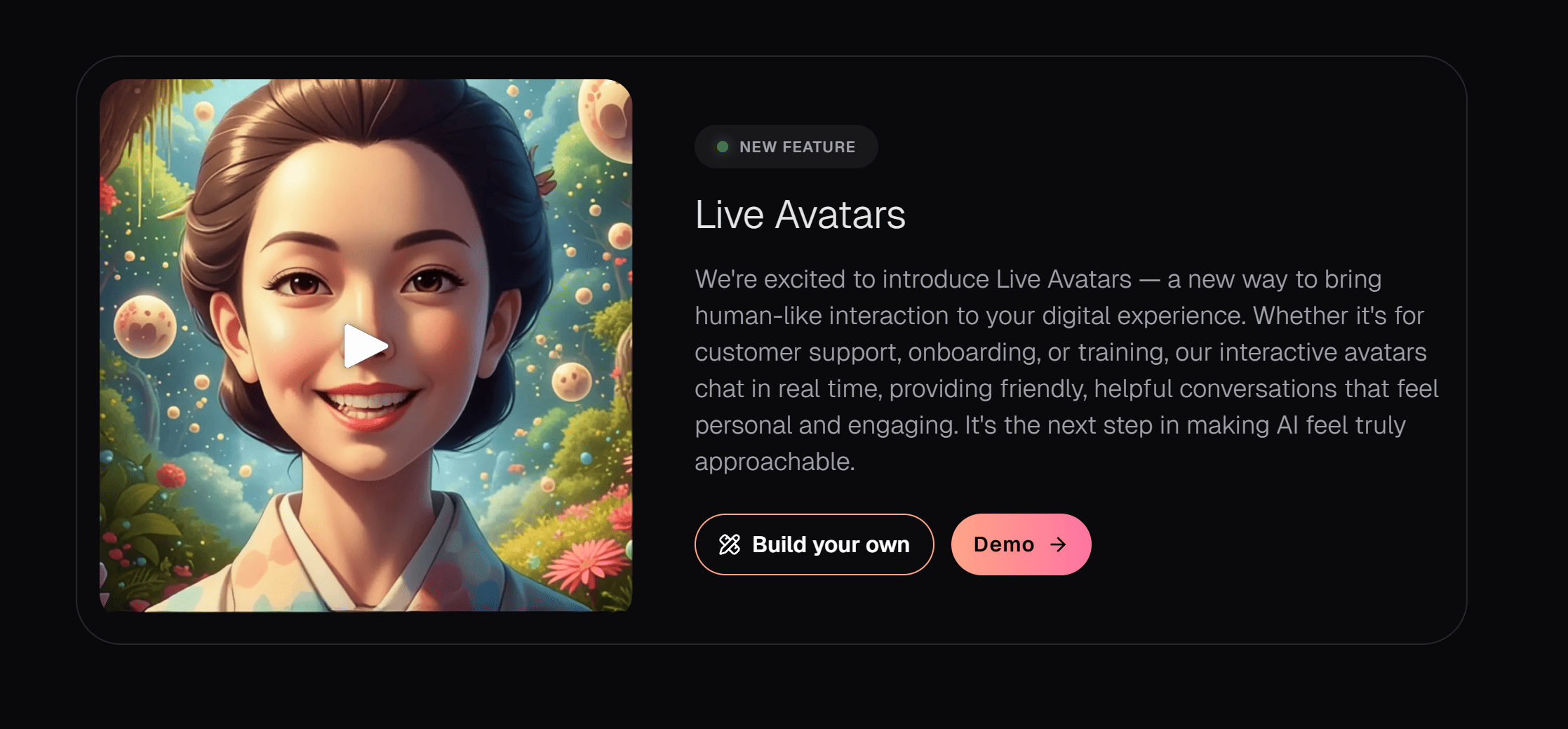 - Ultra-Low Latency: Leveraging LiveKit’s global infrastructure, the avatars deliver sub-100ms response times, enabling seamless, lifelike conversations.
