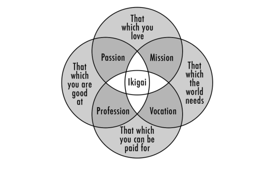 Ikigai is a Japanese concept that the western world has adopted. It’s a way of finding someone’s dream career.