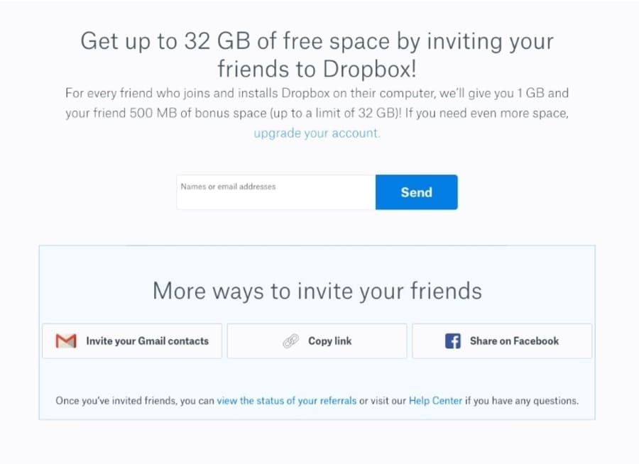 The key to a successful referral program is motivating users to bring new customers with something good. It needs to be an offer that will make the users instantly think “I want this!” Dropbox found the solution in extra storage space. What could that be for your brand? That’s what you need to determine.