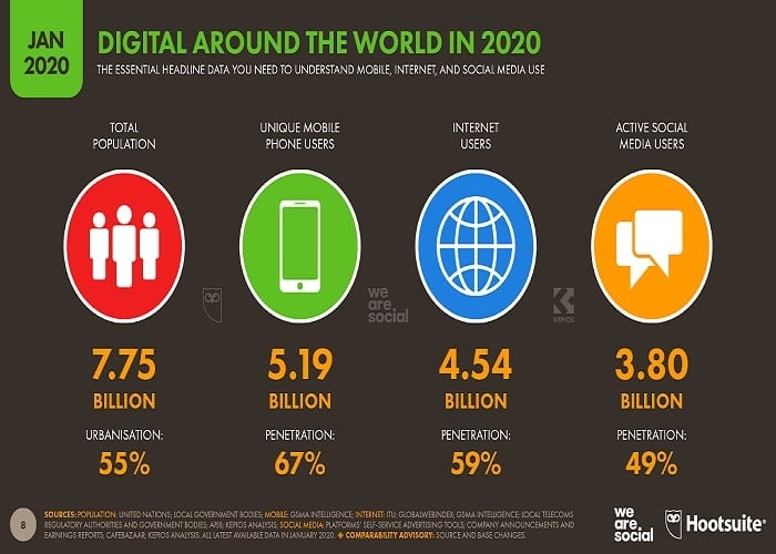 - The number of people using social media has grown by over 9 percent from last year and is now at 5.22 billion.
