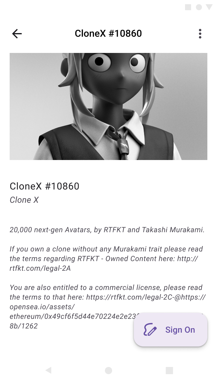 Sign this message with your key that was used to create the NFT. (This is a security step to ensure that only you are the owner of the contract/key address that was used to create your NFT.)