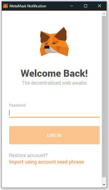 Step 1: Upon clicking on "Connect to Web3", you will be presented with the interface to log into your Metamask account.