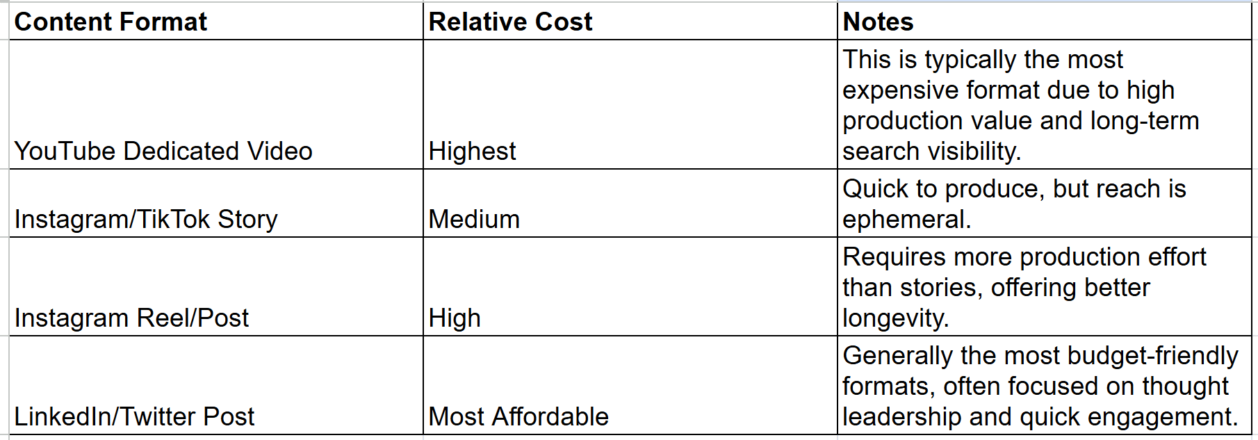 Cost by Content Format: Where to Allocate Budget