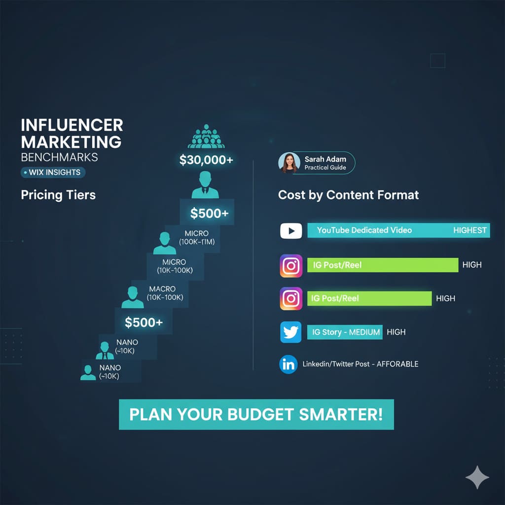 Sarah Adam, the Head of Influencer Marketing at Wix, has published an incredibly valuable pricing guide based on her extensive experience working with influencers. This practical resource offers essential calibration data for anyone planning an influencer marketing budget.
