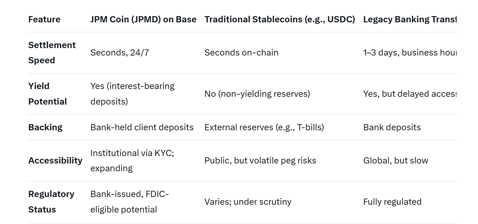 Mallela emphasized this edge: "While stablecoins attract a lot of buzz, deposit-based products offer a compelling alternative for institutional clients. They can generate income." JPMD holders could thus earn yields tied to JPMorgan's deposit rates, potentially making it attractive for treasury management.