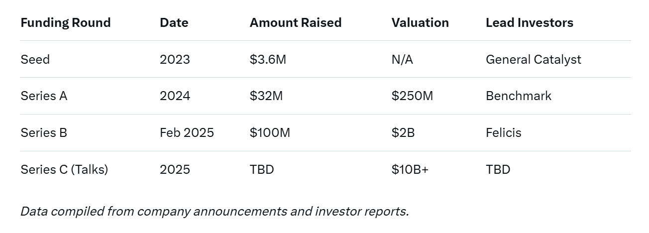 By February 2025, a $100 million Series B led by Felicis catapulted it to $2 billion, an eightfold jump in mere months. Now, as it courts a Series C, sources peg its revenue run rate at $450 million - up from $75 million earlier this year - and a potential $10 billion valuation, fueled by unsolicited investor interest.