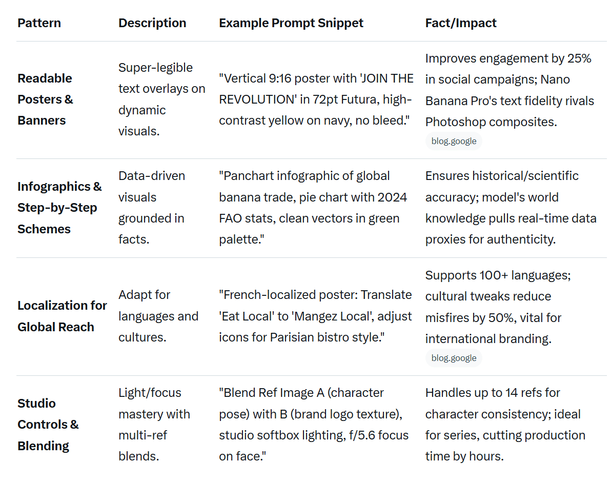 Nano Banana Pro excels in text rendering, world knowledge integration, and multi-image blending, supporting up to 14 reference images for edits and generations. By structuring prompts around a clear vision, cinematic details, textual accuracy, and proven patterns, you'll transform it from a whimsical sketchpad into a reliable creative partner. This guide distills that approach into actionable steps, backed by real-world prompting strategies that yield professional outputs like posters, infographics, and localized campaigns.