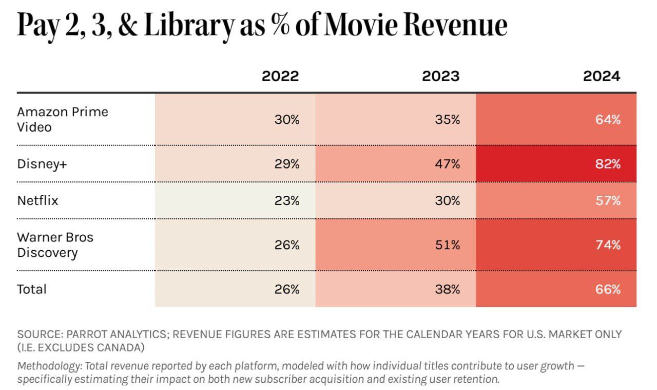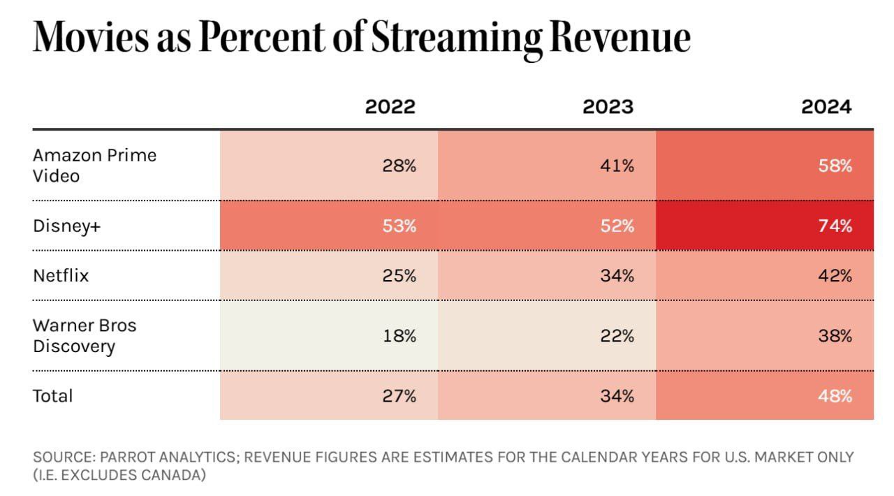 The data clearly illustrates this trend. While films accounted for roughly 27% of total revenue volume in 2022, this share surged to a significant 50% by 2024.