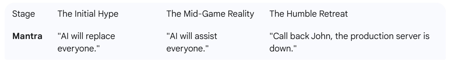 The most painful realization is that AI doesn't thrive in a vacuum. It needs human "glue" to connect different automated processes, interpret ambiguous results, and - critically - fix things when they break.