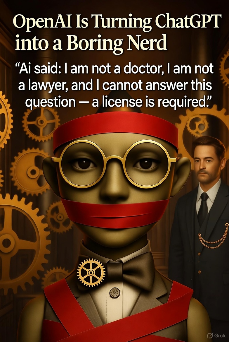 OpenAI (and Anthropic's Claude) act like their outputs are personal, hard-won opinions from a tenured professor. As if they're not statistical models but accountable experts who must be sterile, infallible, and utterly responsibility-free - meaning they take zero actual accountability. Every word is lawyered up to avoid lawsuits.