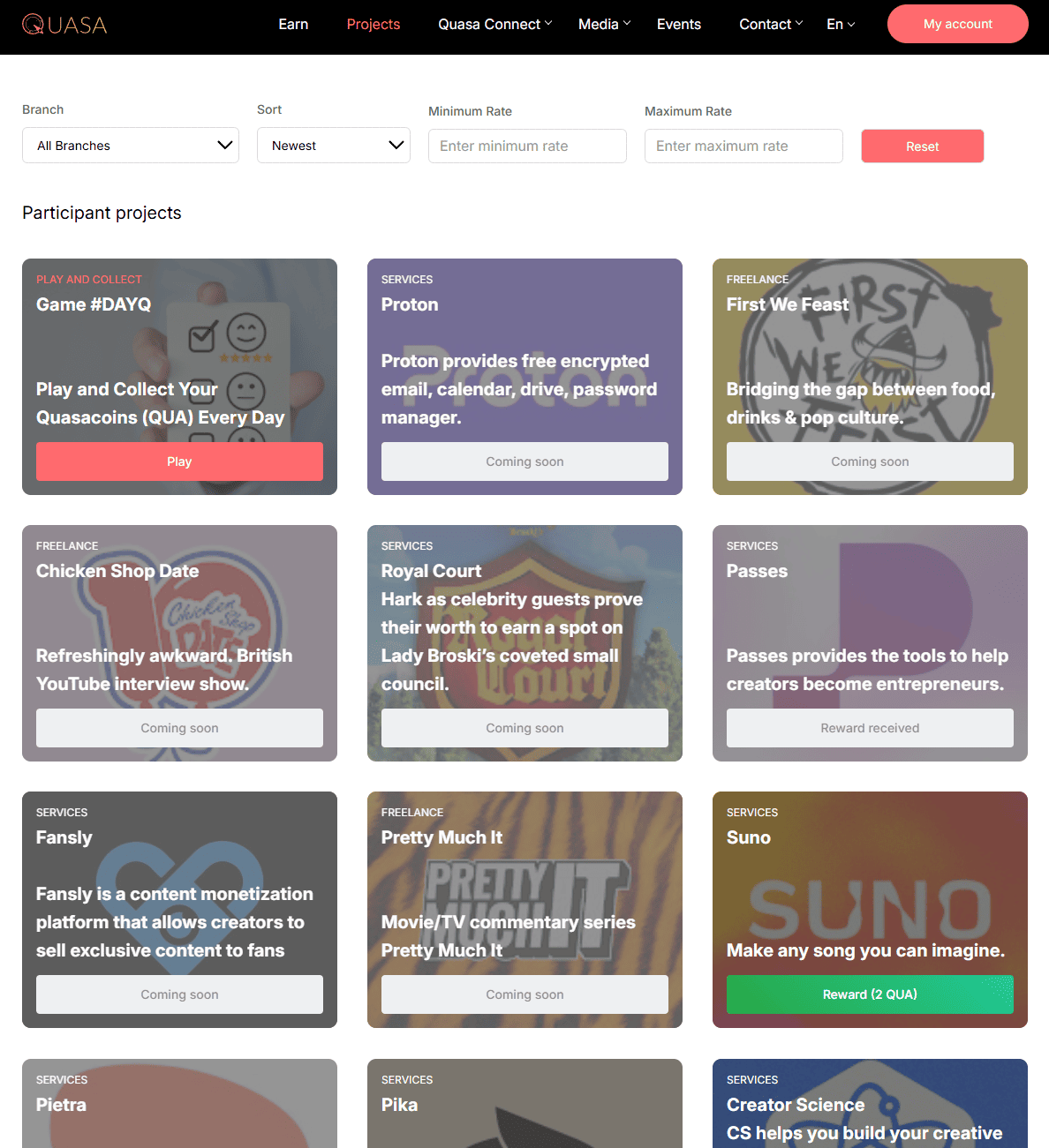 In June 2025, the team implemented the "Companies and Projects" section in Quasa Rewards, and in less than a month, over 150 projects were integrated!