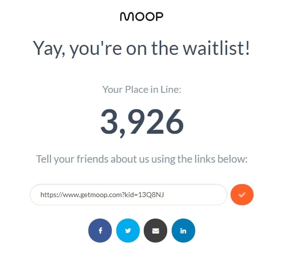 A good example of using contests is zero plastic waste brand MOOP. They ran a promotion where customers who refer the most friends receive free products. Visitors could reserve their free spot by referring more people. This resulted in almost 4,000 referrals within a few weeks.