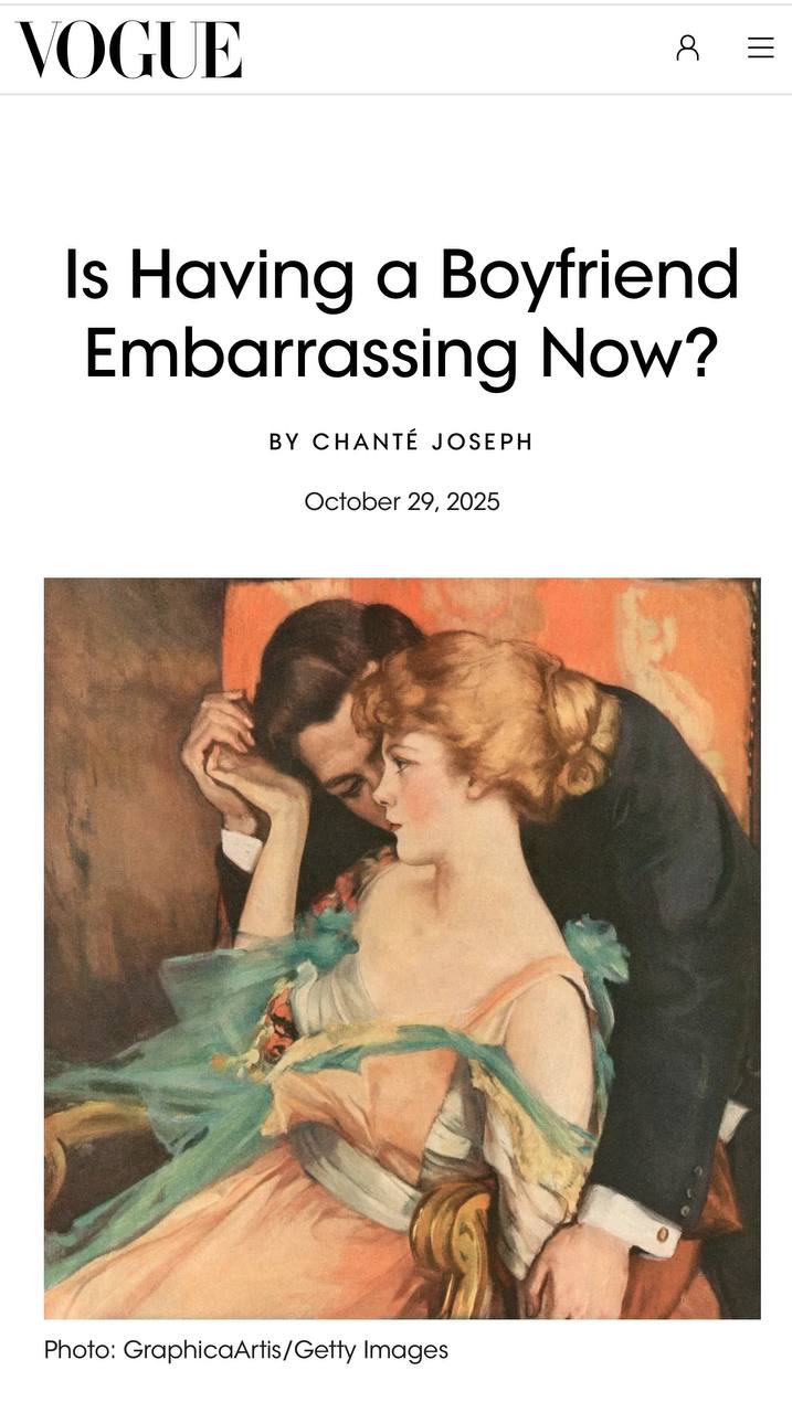Have you seen the viral buzz around the recent Vogue article, "Is Having a Boyfriend Embarrassing Now?"? We simply must break it down. In short: having a boyfriend is suddenly considered "uncool" on social media. This marks a significant new model for self-identification in the digital sphere.