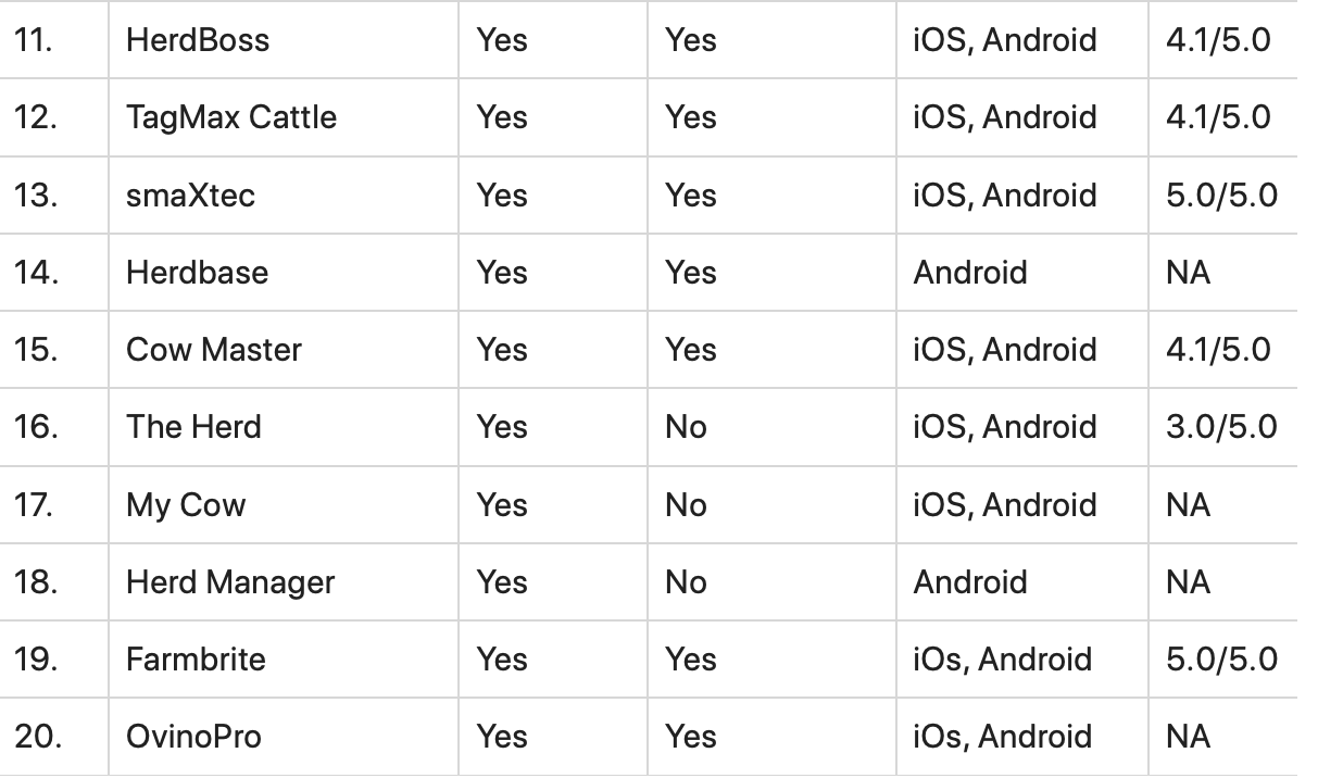 Listed are some free cattle management applications available for iOS and Android that have been pulled from their respective App Store.