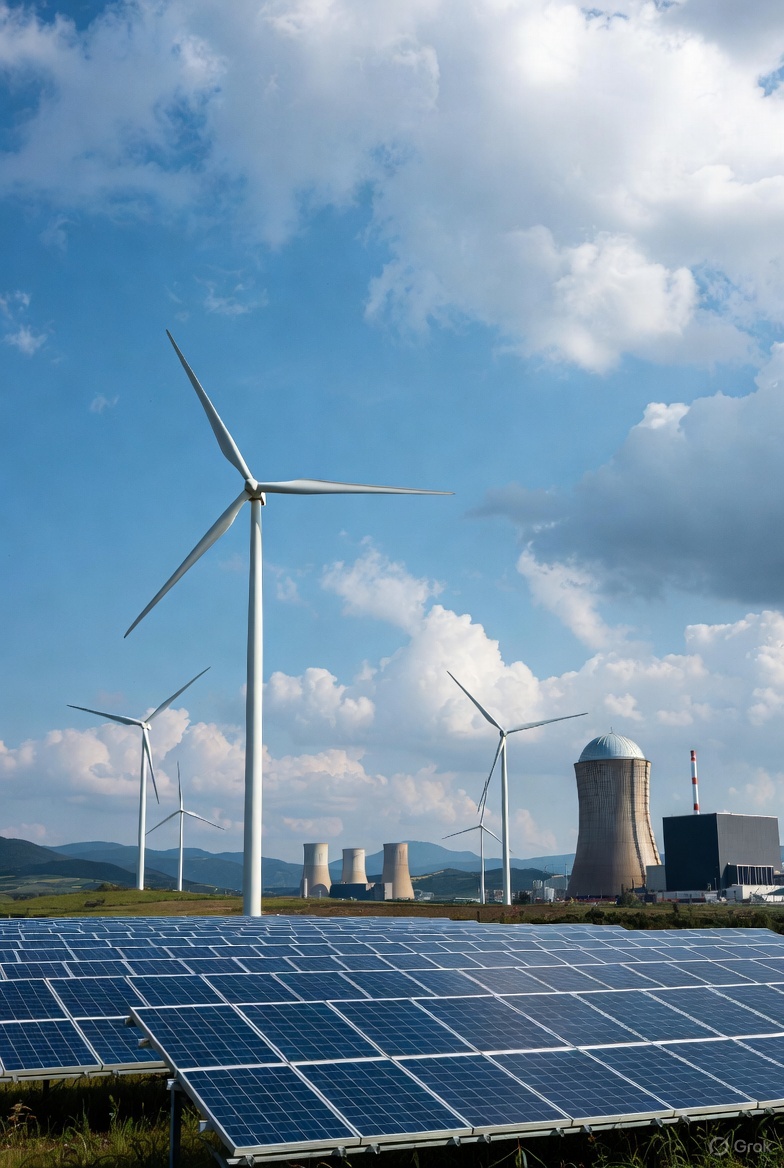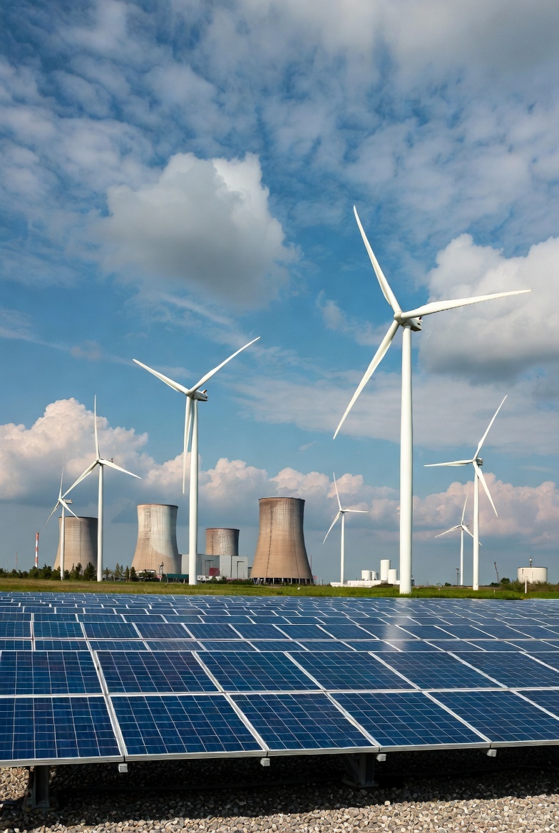 Nuclear power refuses to die, contrary to many obituaries written in the 2010s. Global nuclear output almost doubles from 31 EJ in 2024 to 61 EJ in 2050, led by new builds in China (adding ~150 GW), India (~50 GW), and a surprising late-decade revival in Europe and North America driven by small modular reactors (SMRs) and data-center demand for carbon-free baseload. France, South Korea and the UAE extend existing fleets; the UK finally finishes Hinkley Point C and Sizewell C; while the U.S. sees its first new large reactor in decades (Vogtle units 3 & 4) joined by NuScale, GE-Hitachi and TerraPower deployments from the early 2030s onward.