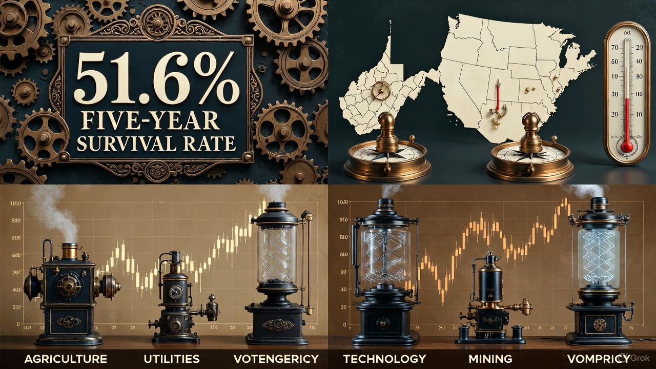 High-volatility sectors tell a grimmer story. Mining, quarrying, and oil/gas extraction scrape by with just 24.5% surviving a decade, battered by commodity price swings and environmental regulations. Technology and information industries fare little better, with 29.1% longevity, as rapid innovation cycles and disruption (think AI upending software firms) cull the weak. Construction clocks in at around 36.6% after five years, hampered by economic cycles tied to real estate booms and busts.