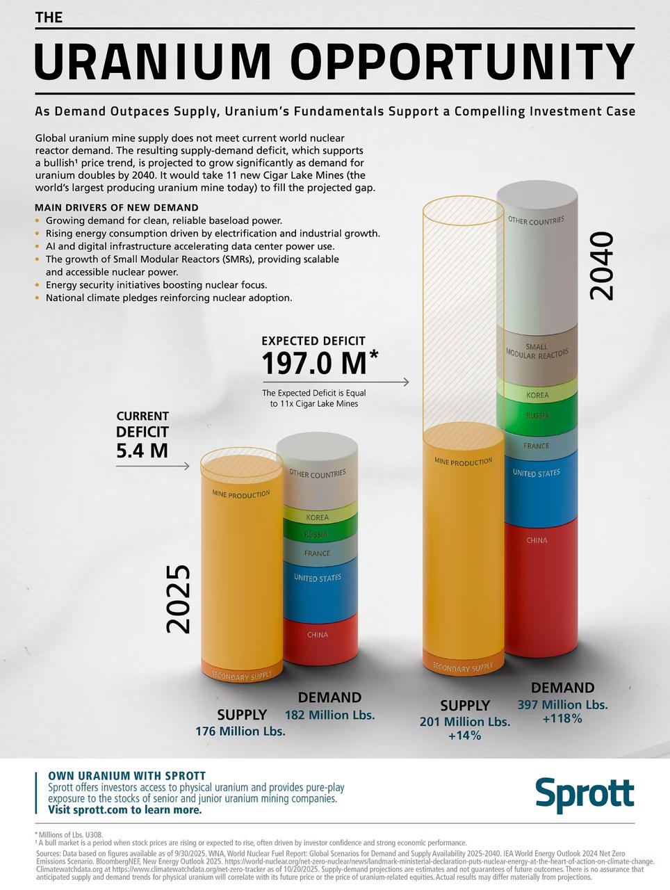 For investors, this mismatch underscores uranium's bullish case: Prices must rise to spur supply, potentially sustaining a multi-year upcycle. Physical trusts like Sprott's have amplified tightness by removing material from circulation.