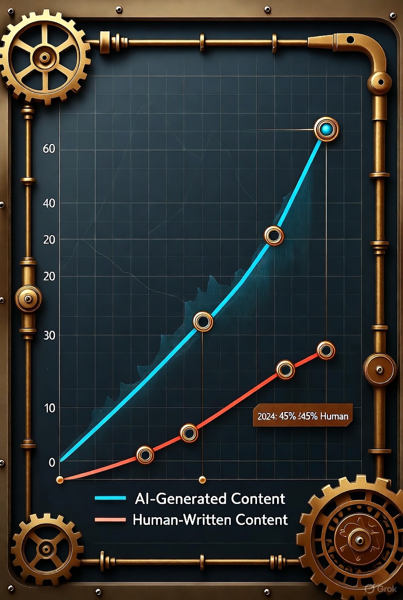 - Feedback Loops Amplify Scale: As AI systems increasingly train on existing AI-generated material, the proportion of machine-made content could grow exponentially. Even modest individual outputs might snowball into a dominant presence.