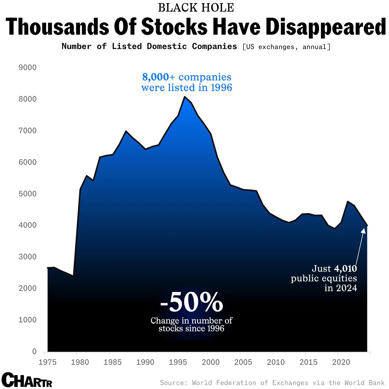 Fast-forward to 2025, and that number has plummeted to around 4,000 – a roughly 50% decline that has reshaped the investment world. This isn't just a story of fewer IPOs or economic headwinds; it's a tale of consolidation driven by private equity's allure, regulatory hurdles, and – most aggressively – a feeding frenzy among tech titans.