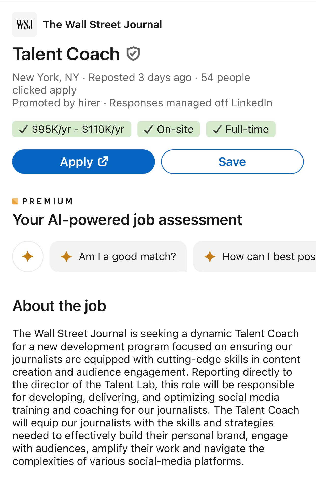 The Wall Street Journal (WSJ) has taken a bold step into the evolving media landscape by posting a full-time vacancy for a Creator Coach.