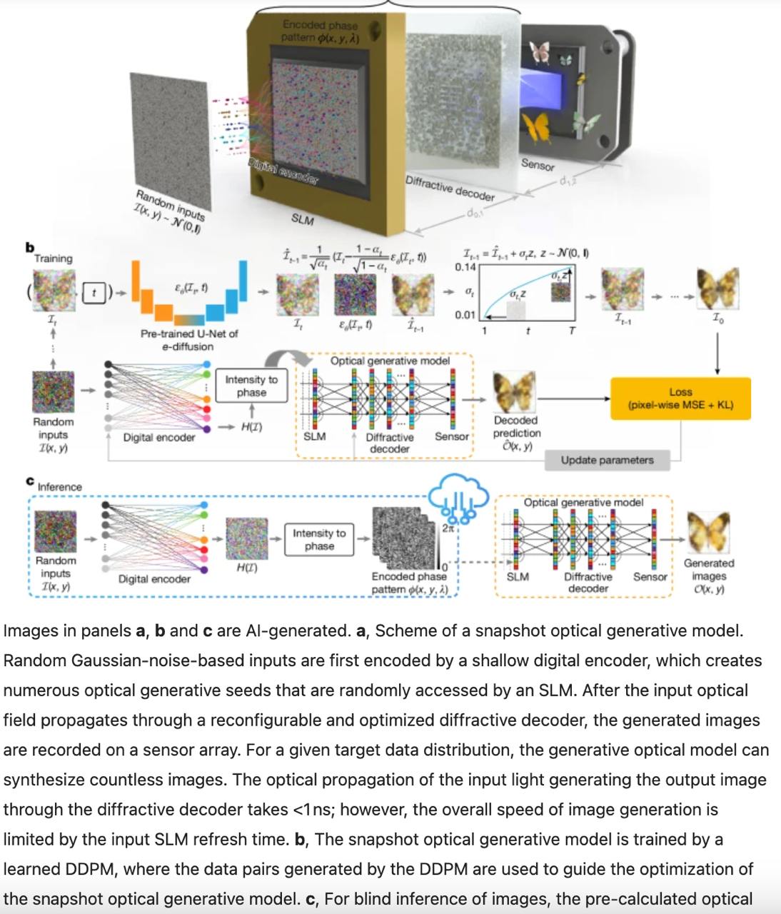 This is not just another “optical neural network” paper. For the first time, a physical optical system trained end-to-end with backpropagation (via differentiable wave-propagation simulation) has crossed the threshold from toy proofs-of-concept into generating recognizable, aesthetically pleasing color images that rival early Stable Diffusion outputs — all while consuming less power than a smartwatch display.