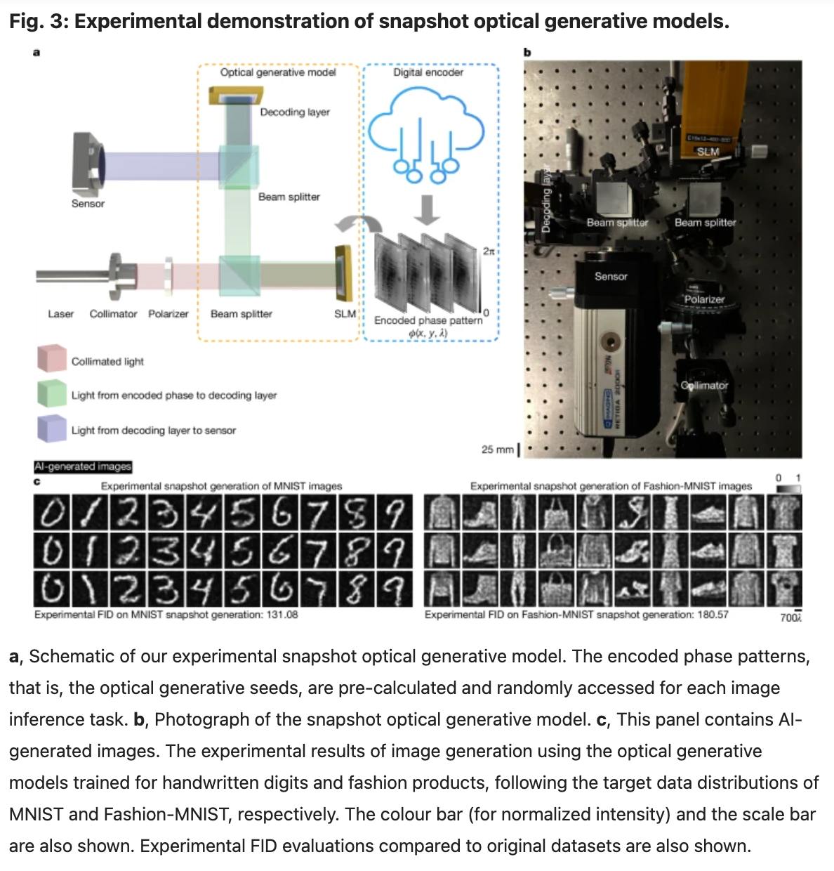 - Snapshot OGM: a single forward pass of light produces the final image in <1 nanosecond of optical computation (limited only by the speed of light over ~10 cm);