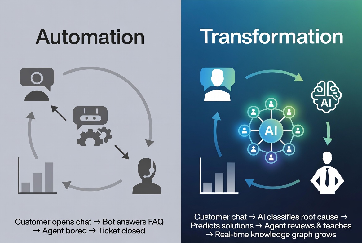 If agents are still doing the exact same work, just with fewer tickets, you accelerated the old process. True transformation rewires the workflow itself.