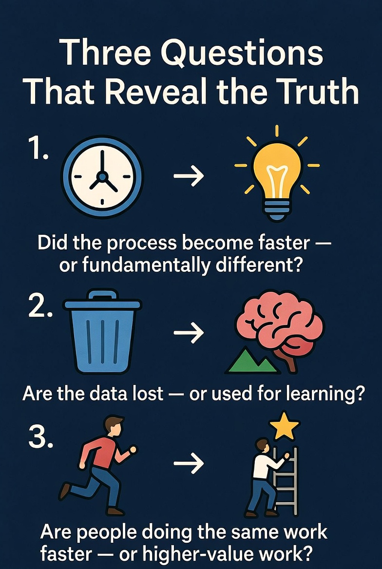 Your answers will tell you whether you built automation or genuine transformation: