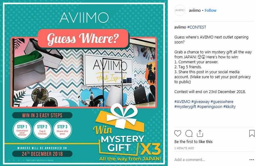 In the example below, this brand’s contest not only engages customers but also promotes the launch of their new store. Also, asking consumers to tag their friends is also a good tactic that they have used to increase their brand’s reach.