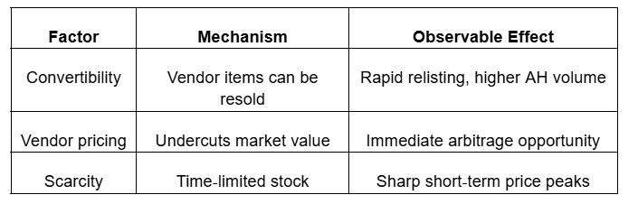 If anniversary vendors introduce limited‑time, highly convertible items, you'll often see immediate and concentrated price spikes on the auction house as players arbitrage vendor-to-player pathways and re-list for profit. You’ll notice rapid turnover when vendor pricing sits below market equilibrium; data from past events shows sell orders cluster within hours and median listing prices jump 30–200% depending on convertibility and stack size. This creates transient liquidity, compressing spreads and inflating short‑term gold velocity.