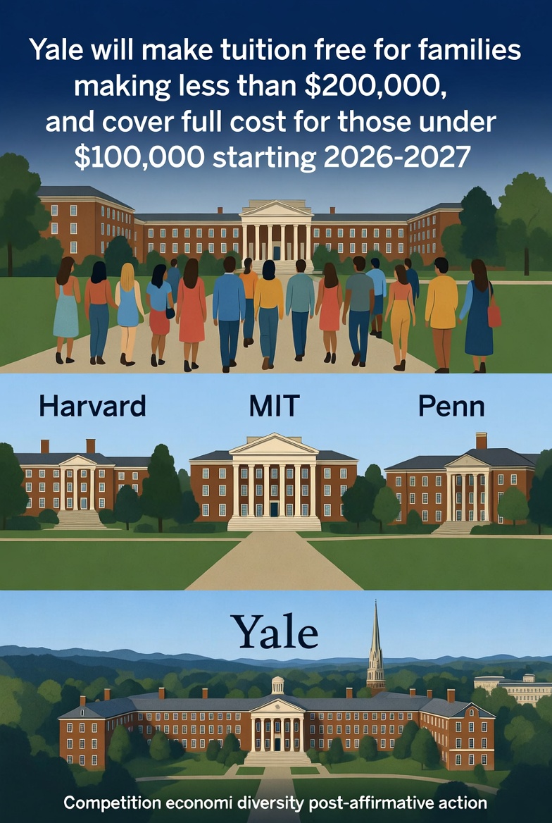 Yale's announcement aligns with similar expansions at peer institutions, signaling a broader trend among Ivy League and elite schools to prioritize economic diversity following the 2023 Supreme Court ruling ending affirmative action in admissions.