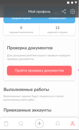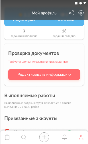 Кроме того, факт прохождения Исполнителем процедуры подтверждения данных повышает рейтинг пользователя и значительно увеличивает его шансы на то, чтобы первым увидеть наиболее привлекательные задания.