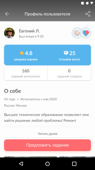 Нажмите, “Предложить задание“ для нужного вам исполнителя. Приглашение отправлено.