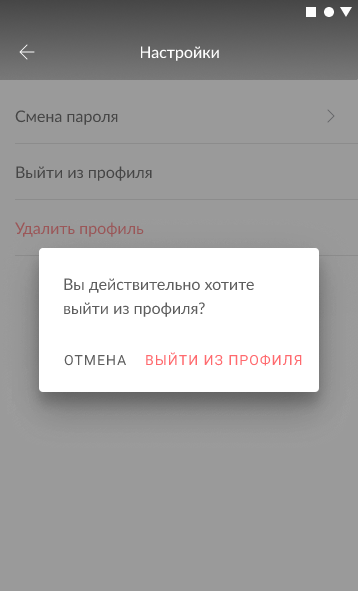 После подтверждения, ваш профиль будет удален из Приложения.