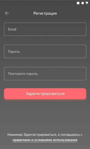 Чтобы зарегистрировать новый аккаунт в приложении Quasa Connect, нажмите “Зарегистрироваться“ на стартовом экране авторизации: