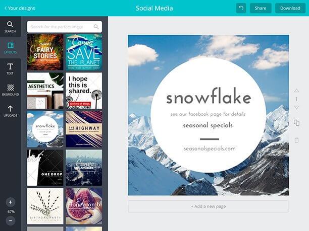https://www.canva.com/ — доступ к нему бесплатный. Он понятнее и проще, чем Photoshop, но позволяет создавать хорошие картинки и дизайн пабликов. Лучше всего работает на Twitter и Facebook.