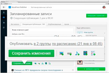 https://novapress.com/ — бесплатный период – 10 дней. Умеет отслеживать контент на заданных площадках и постить его в определенное время. Работает с Google+, Facebook, ВКонтакте, Twitter.