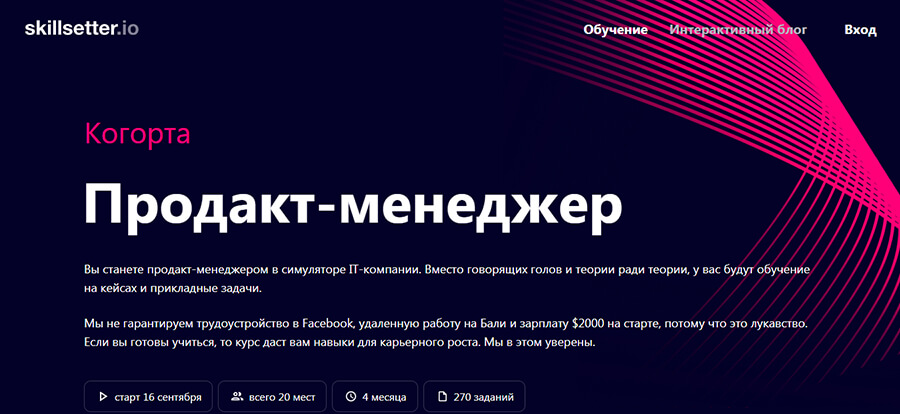 «Профессия Product-менеджер 2.0.» – это исчерпывающий курс без воды с предоставлением ученикам нужных знаний и инструментов от дизайнеров, продактов и CPO из ведущих продуктовых компаний. Авторы гарантируют собеседование и возможность трудоустройства после завершения обучения на продакт-менеджера. Курс с нуля до PRO.