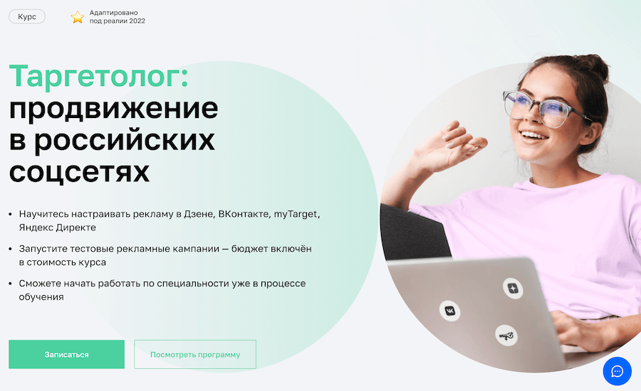 Еще один базовый курс по таргету уже от школы Нетология. Обучение с полного нуля с учётом реалий 2022 года. Каждый студент получает по 8 000 рублей на практику (запуск первых РК во время обучения).