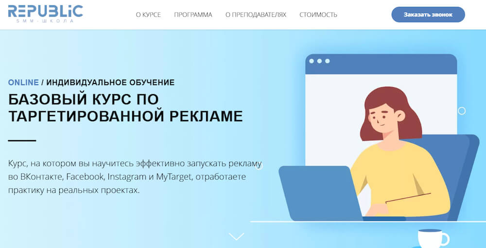 Курс для новичков от SMM-школы Republic. Школа высылает бесплатный пробный урок. Обучение на реальных проектах во ВКонтакте и MyTarget. После прохождения курса у учеников остается доступ к 32 ГБ видеозаписей и 68 документам, чек-листам, шаблонам и инструкциям из личной коллекции SMM-агентства Republic.