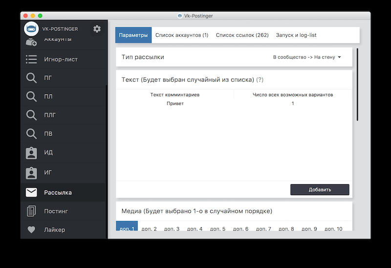 Программа, для продвижения групп и сообществ ВКонтакте. Одна из самых масштабных по функционалу. Разработчики предусмотрели почти всё для SMM-специалиста: парсер и инвайтинг на основе полученных данных, инструменты для рассылок, масслайкинга и модерации и много другое.