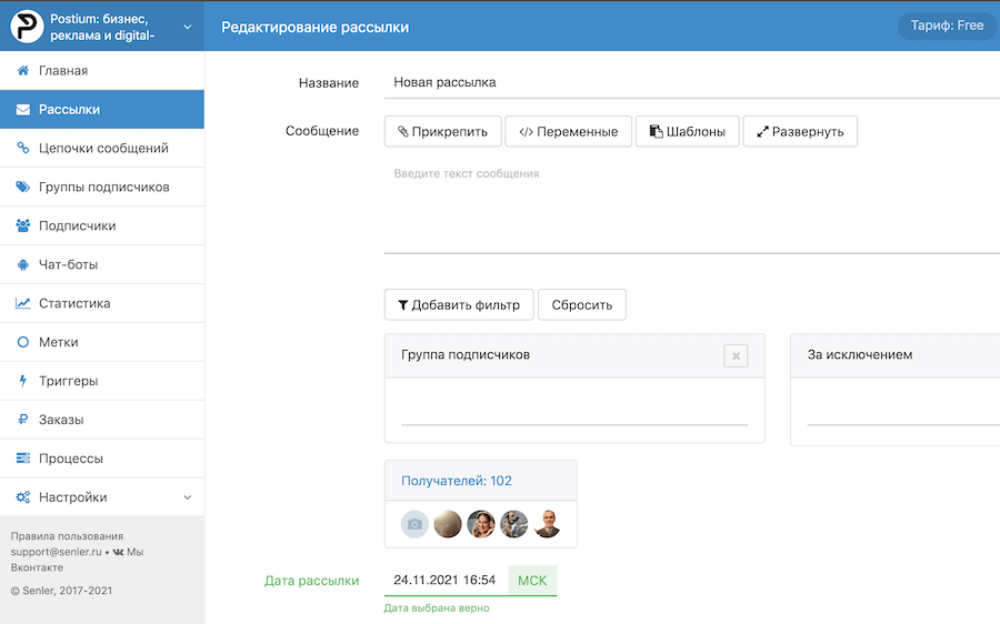 Сервис частично платный. В бесплатном доступе только 20 функций (всего их более 90) Подписка: 699 р./мес. Промокод: «postium» – 2 дня доступа + 1 месяц в подарок при покупке от 3 месяцев
