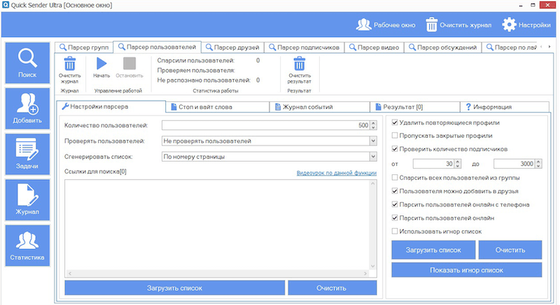Парсер, который позволяет собирать и анализировать целевую аудиторию ВКонтакте. Также есть функция управления таргетом в ВК, база рекламных тизеров и множество других полезных функций.