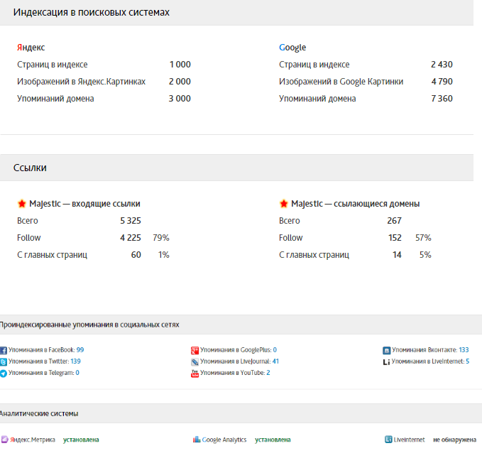 - присутствие проверяемого сайта не только в поисковых системах, но и социальных сетях (количество упоминаний в индексе).