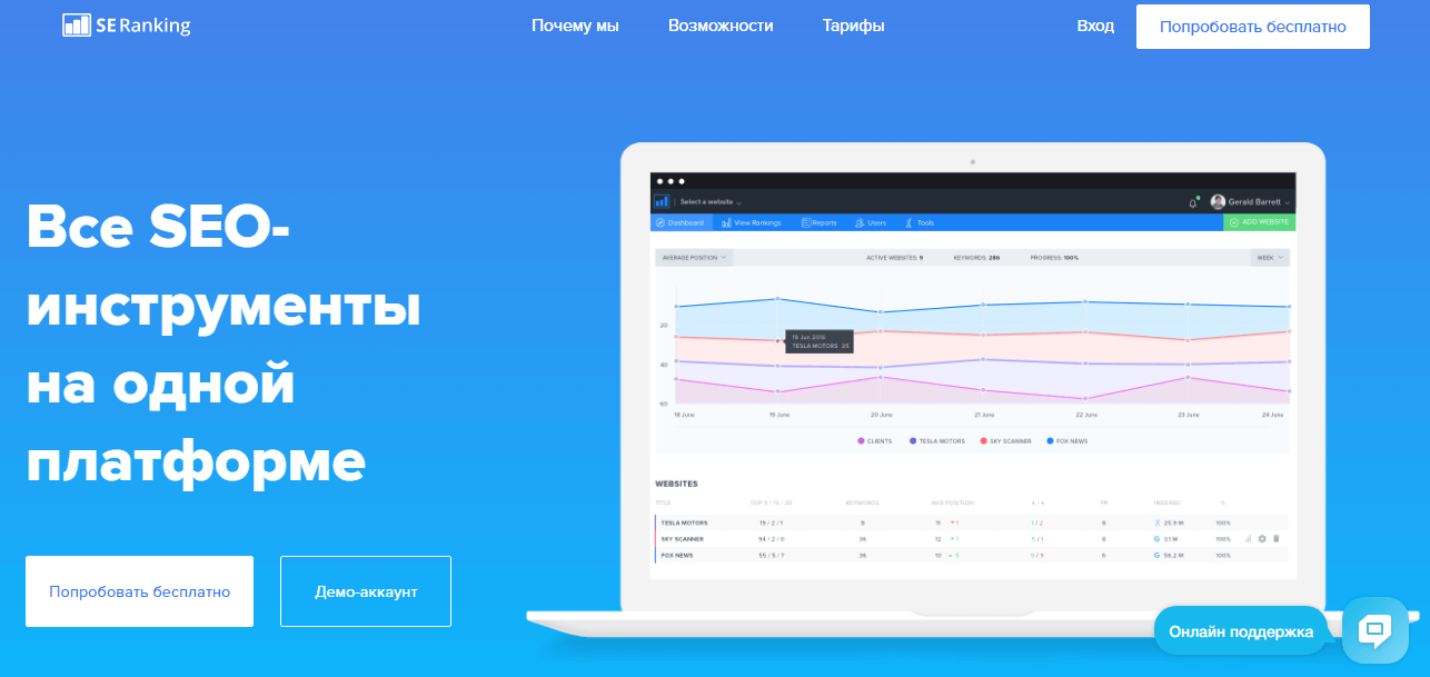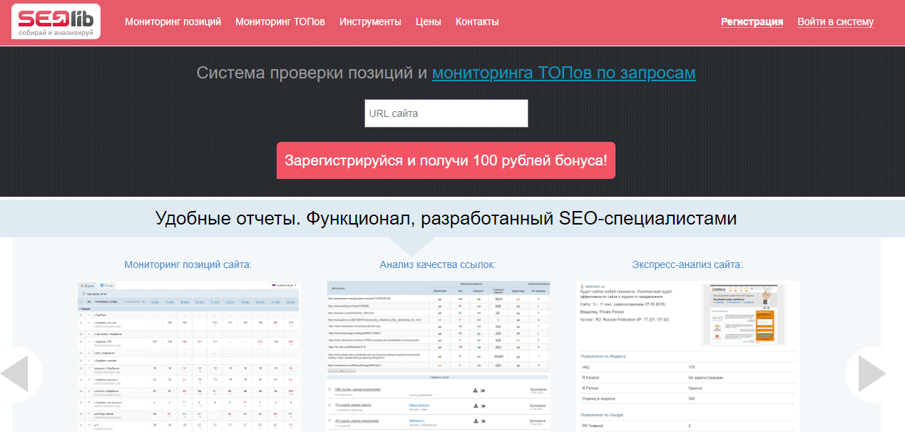 Еще один сервис для съёма позиций. Точнее не так – это сервис с большим набором SEO-инструментов, одним из которых является как раз мониторинг позиций по фразам.